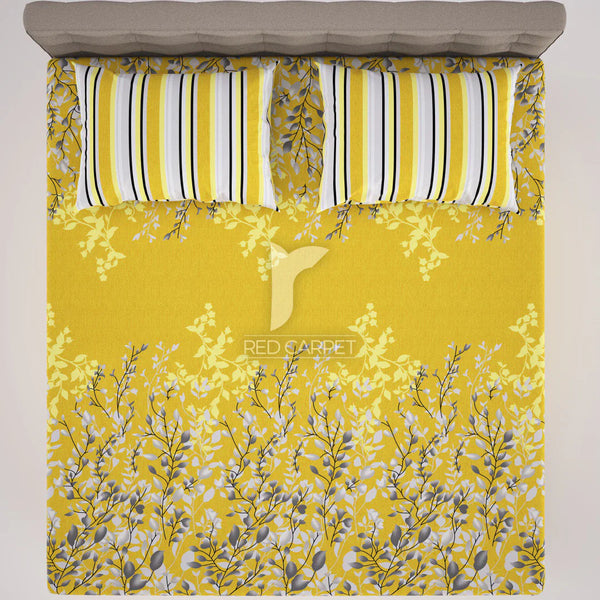3 Pcs Cotton Bedsheet- yellow leaf (Premium)