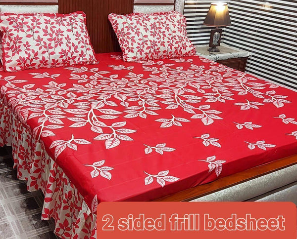 Frill king cotton Bedsheet set 3 pcsMaterial: cotton richCotton rich & silky softWrinkle-resistant sheetMachine washable, quick-dying & suitable for all detergentsAdd elegance to your bedroomHigh qualityExcellent value for money