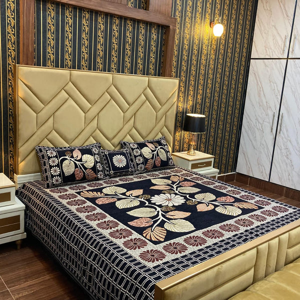 A velvet jacquard bedsheet combines the plush softness of velvet with intricate jacquard-woven patterns for a luxurious, textured look. Its elegant design and rich colors add sophistication to any bedroom, offering unmatched comfort and style....