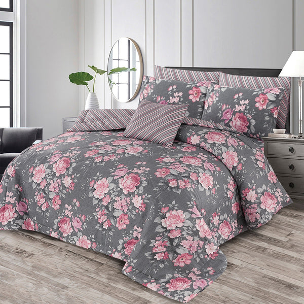 Fabric Composition: 100% cotton Package Includes 7 Pcs: 1 x Bed Sheet 92 x 98 Inches 1 x Comforter Filled (150 GSM)94 x 98 Inches 2 x Pillow Covers Printed19 x 29 Inches 2 x...
