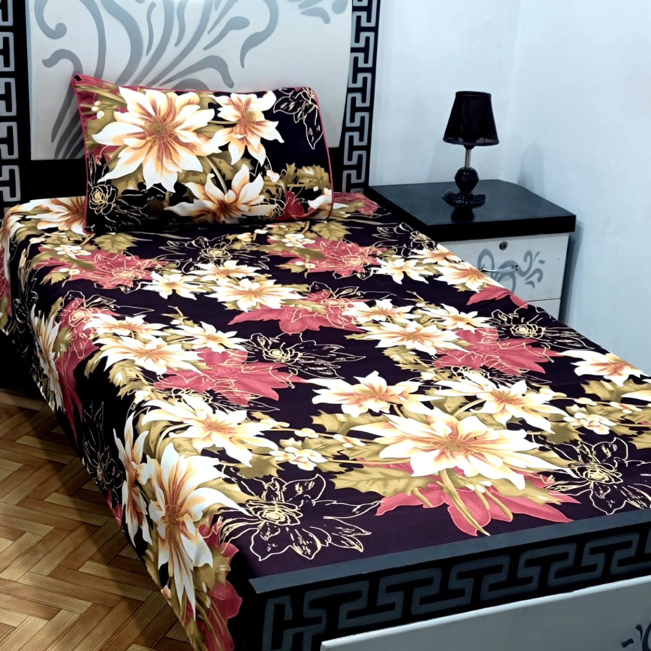 4Pc Single Pair Bedsheets✔️Stuff Quality :  Cotton Fine✔️Size : width 60" Length 90"✔️Easily Washable INCLUDES:✔️2 Single Bedsheets✔️2 Pillow Covers✔️Ready made